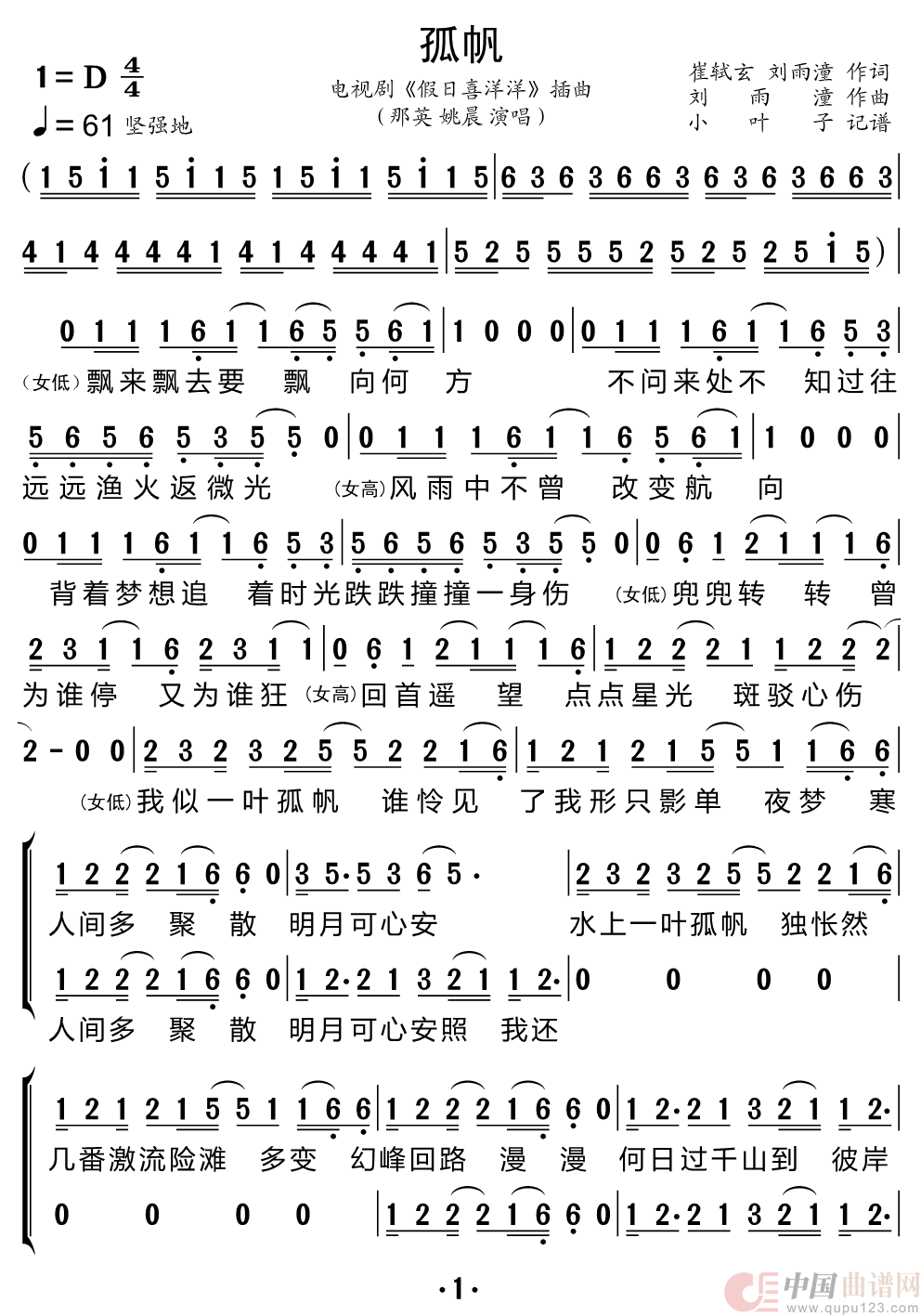 作词:崔轼玄、刘雨潼 作曲:刘雨潼 演唱(奏):那英、姚晨 来源:简谱网 上传:小花儿357