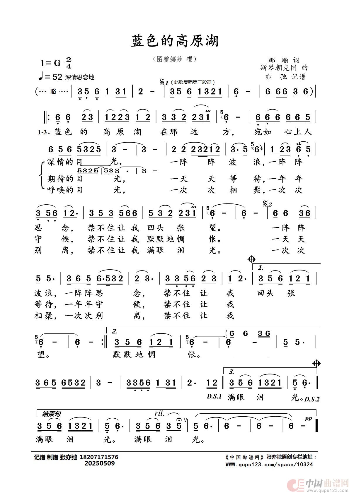 蓝色的高原湖(亦弛记谱)(1)_原文件名:蓝色的高原湖_Page1.jpg