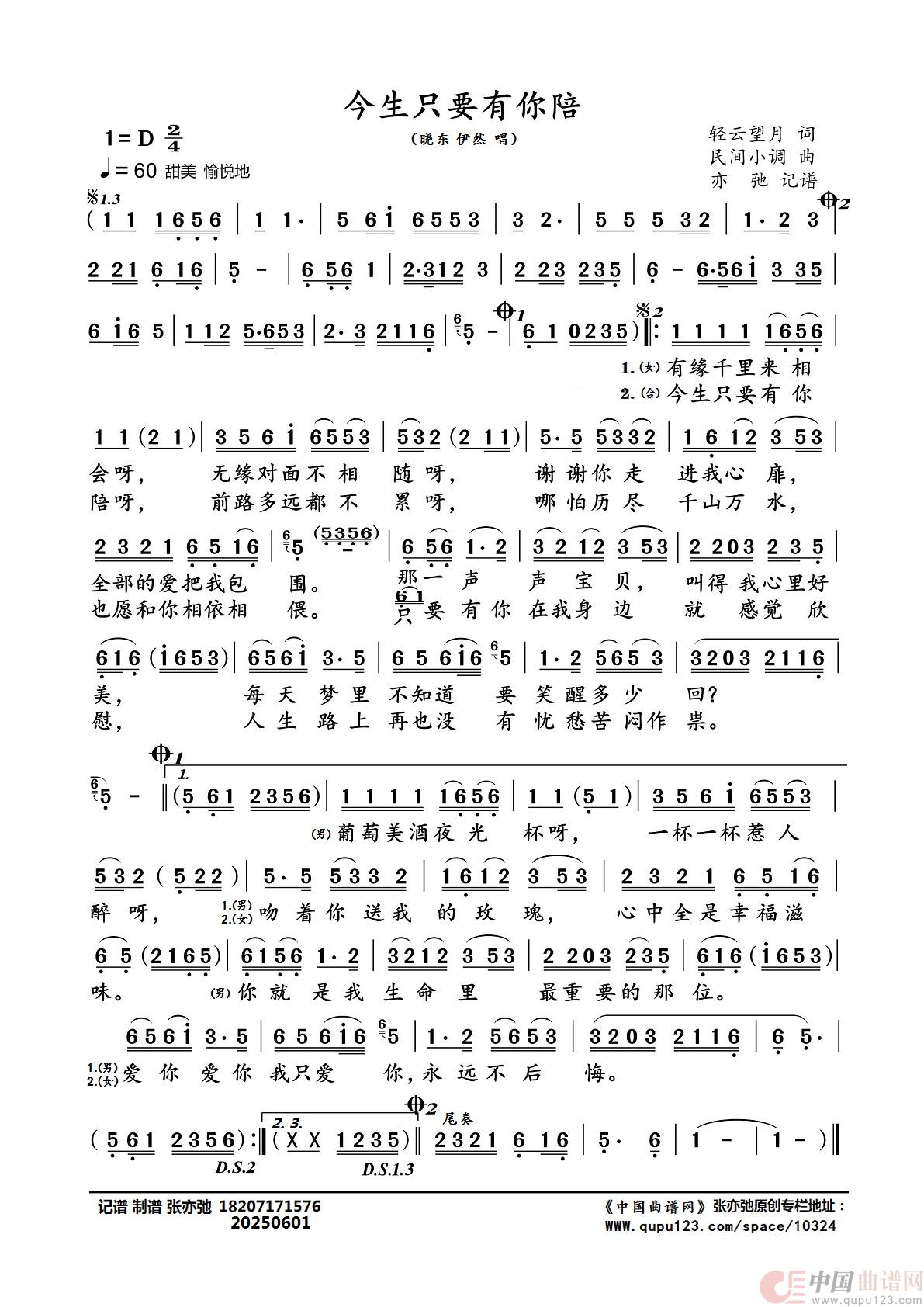 关于《今生只要有你陪(亦弛记谱)》曲谱的评论