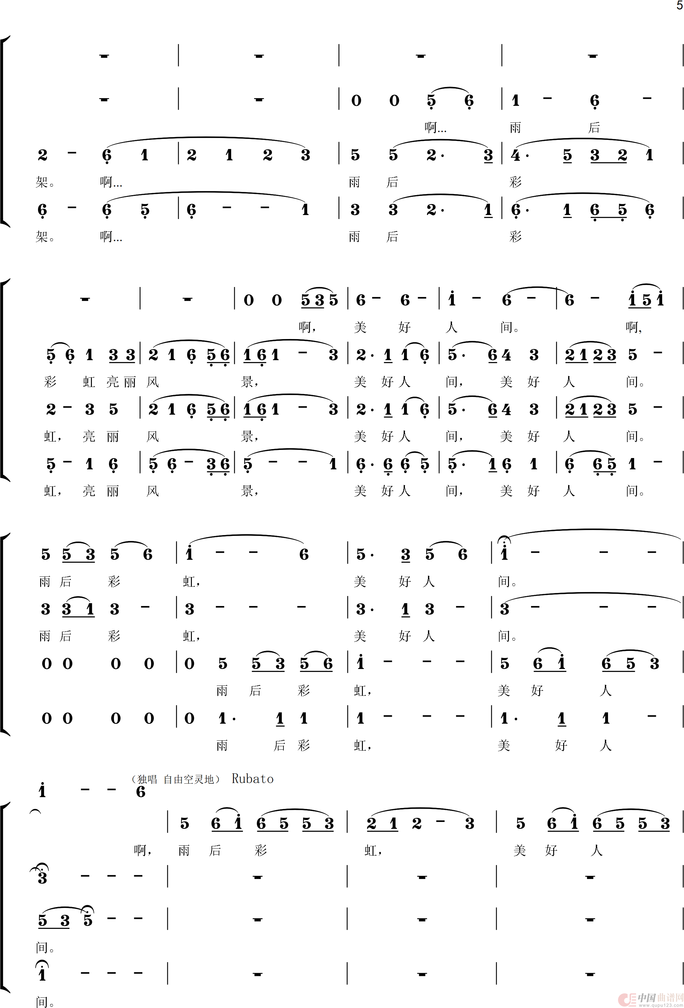 关于《雨后彩虹美好人间》曲谱的评论