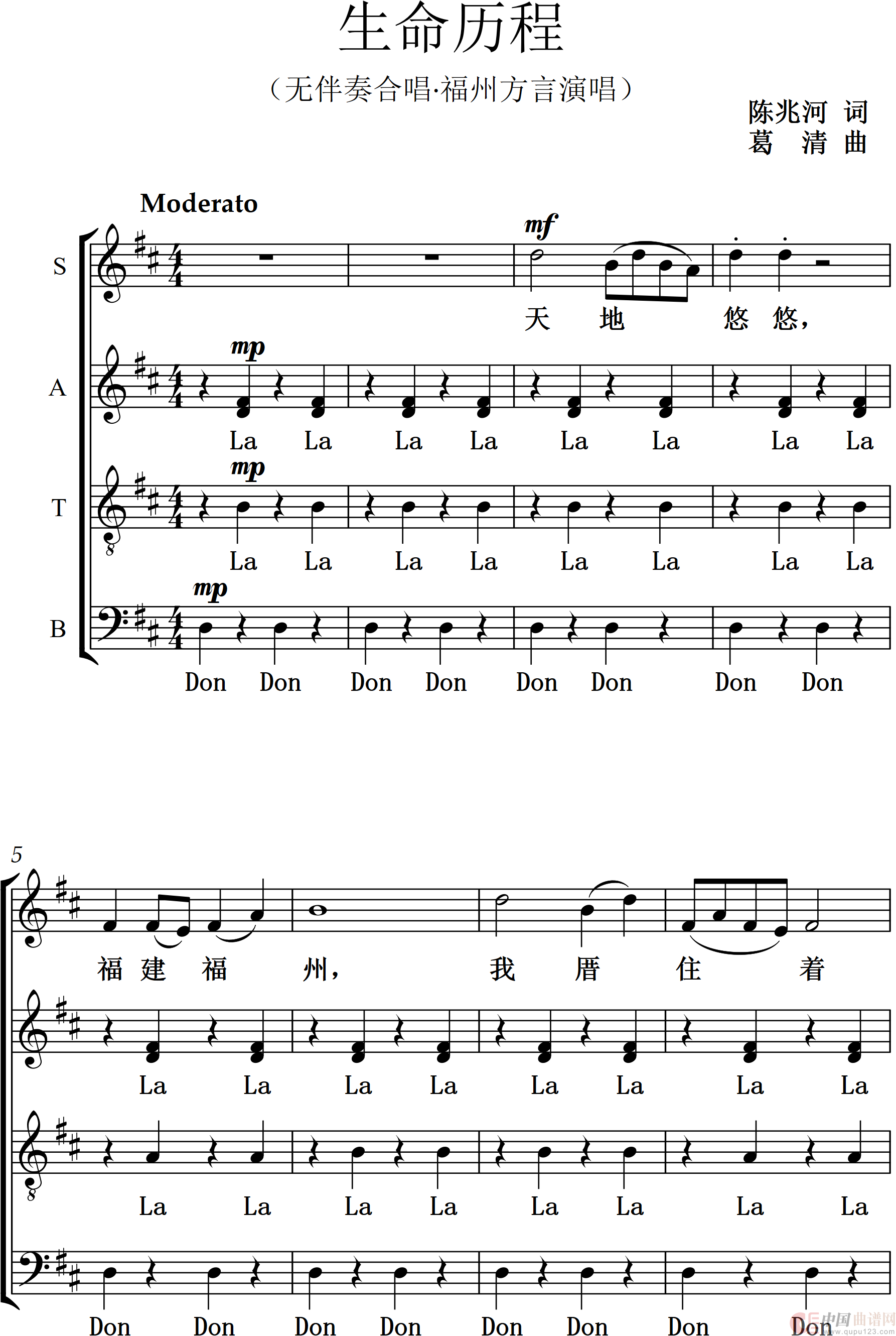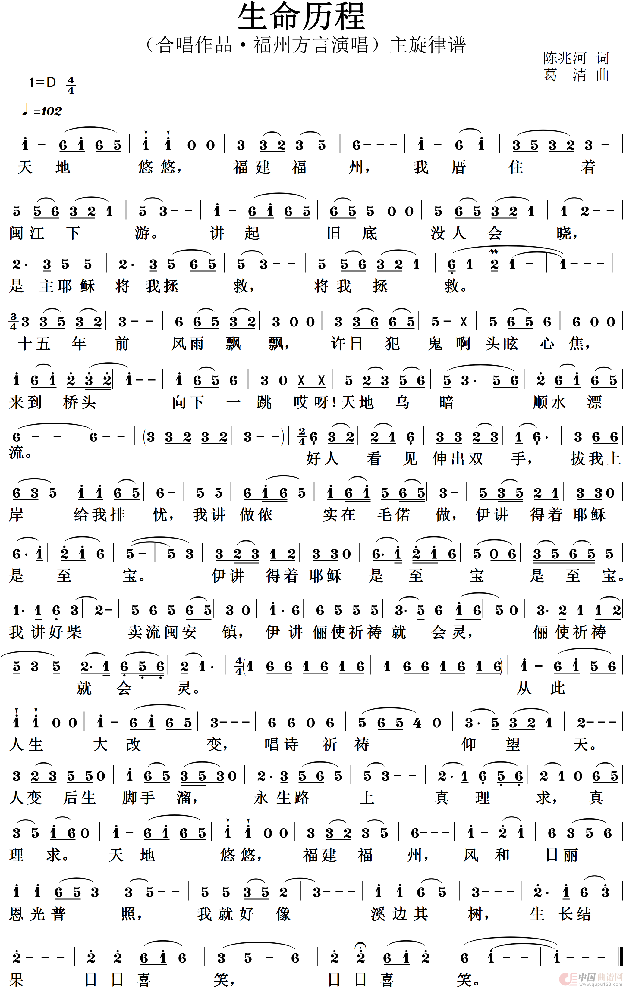 生命历程(福州语·无伴奏合唱·附主旋律简谱)
