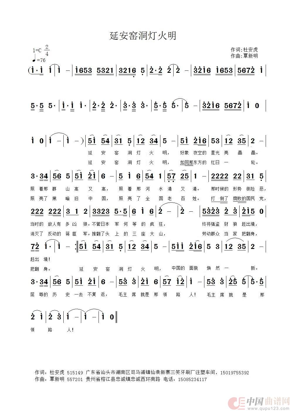 关于《延安窑洞灯火明》曲谱的评论