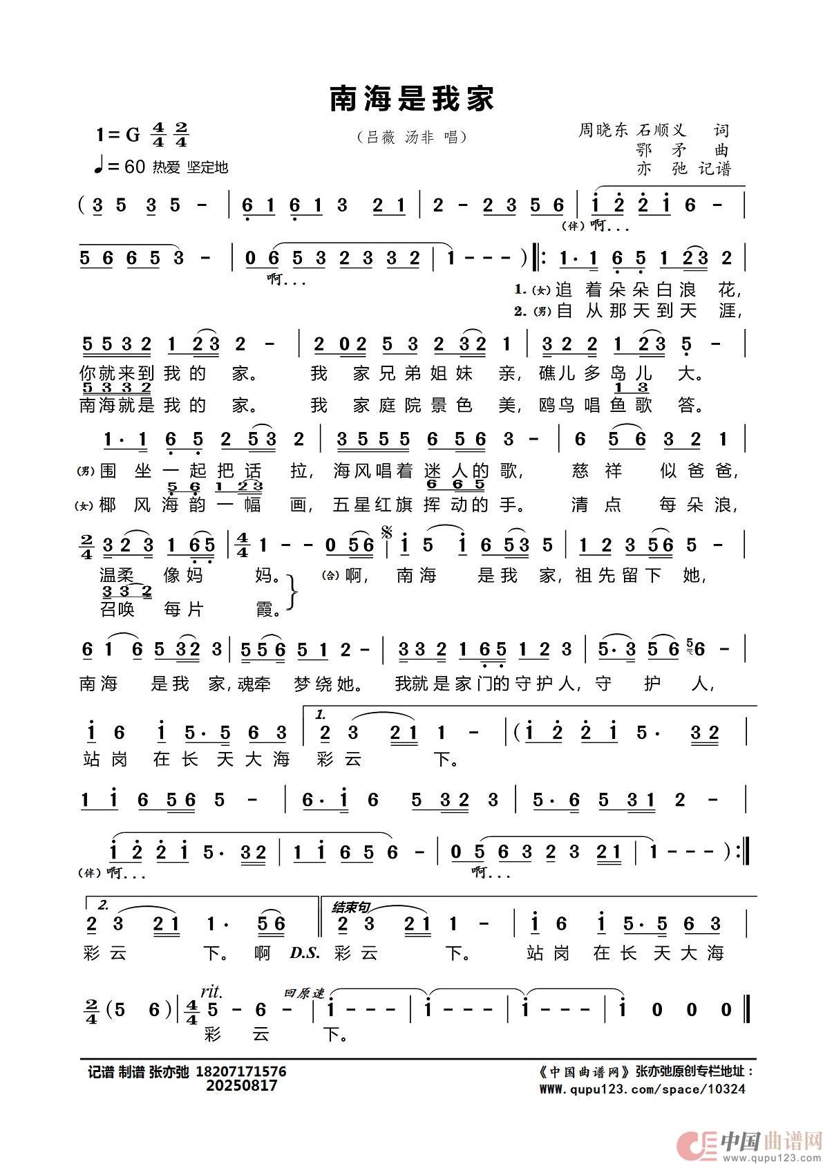 关于《南海是我家(亦弛记谱)》曲谱的评论