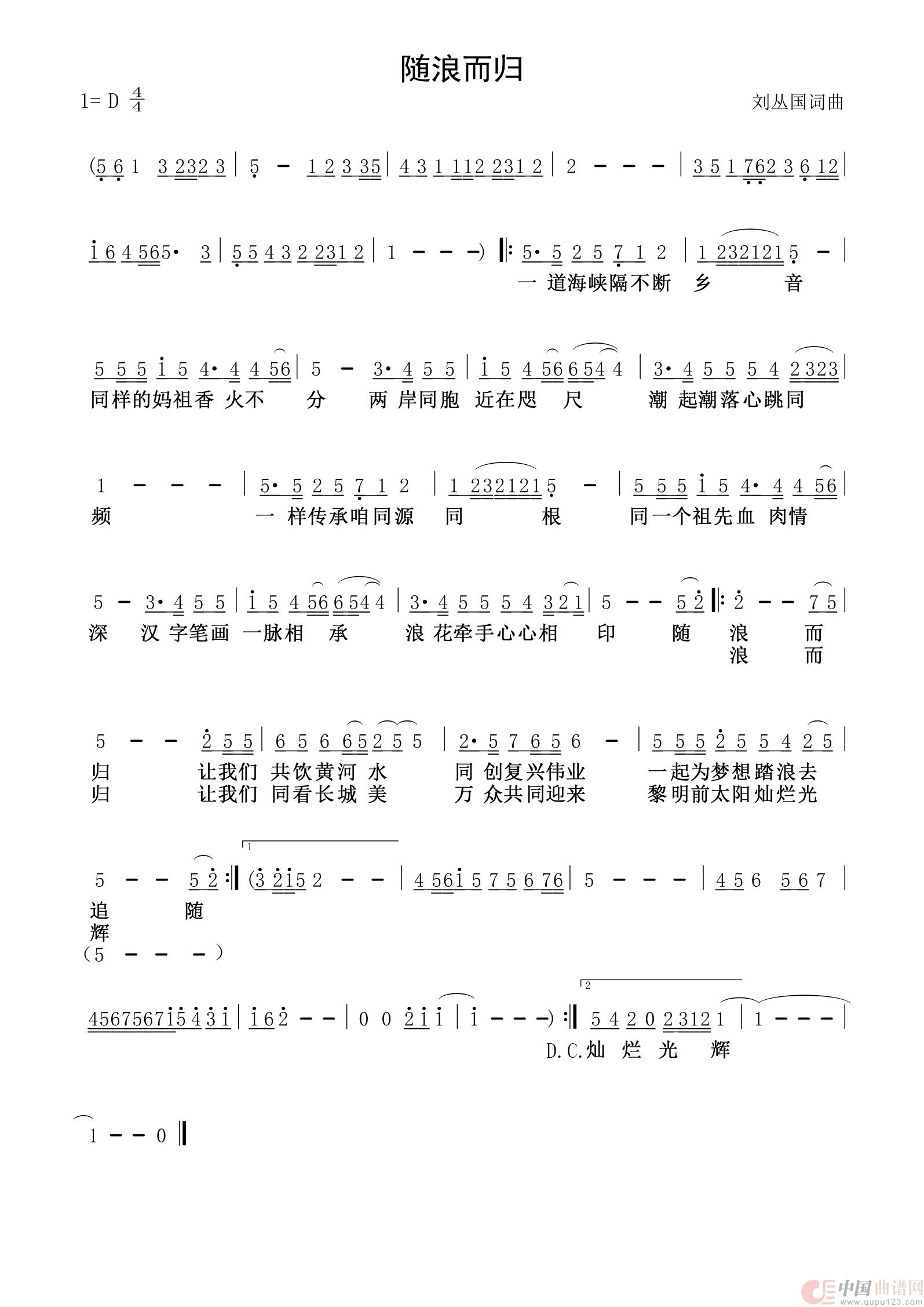 关于《随浪而归》曲谱的评论