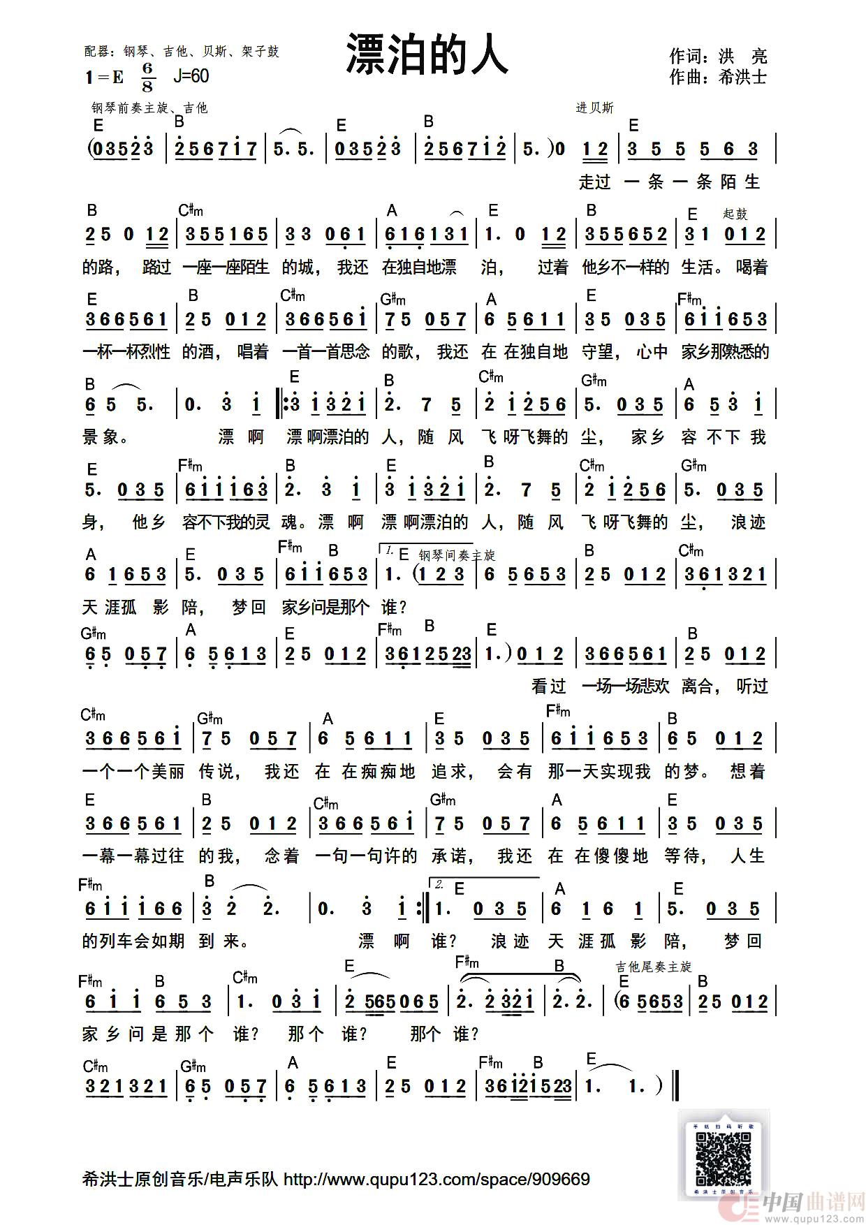 《漂泊的人》功能简谱,由希洪士原创音乐2025年12月25日上传。