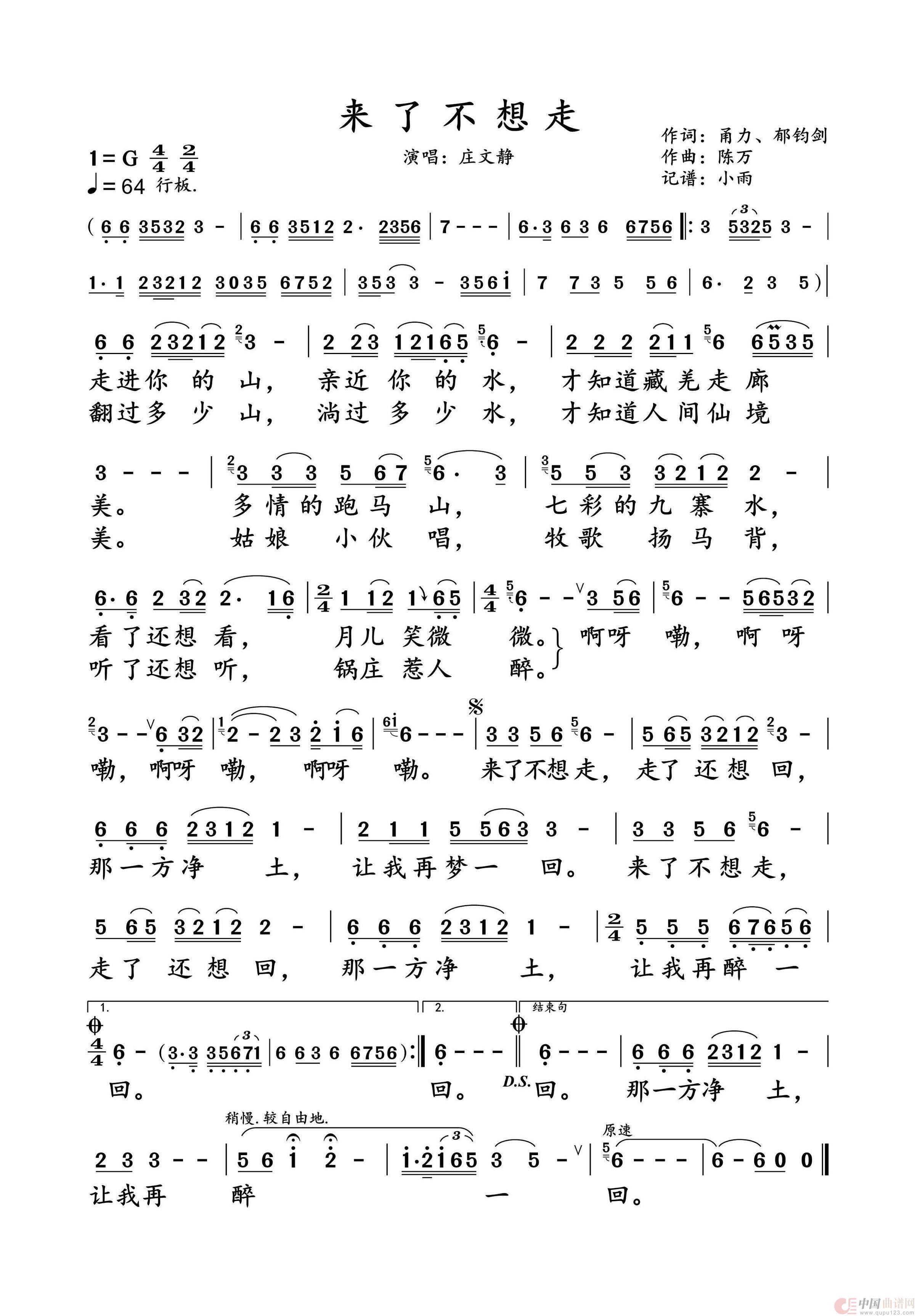 关于《来了不想走》曲谱的评论