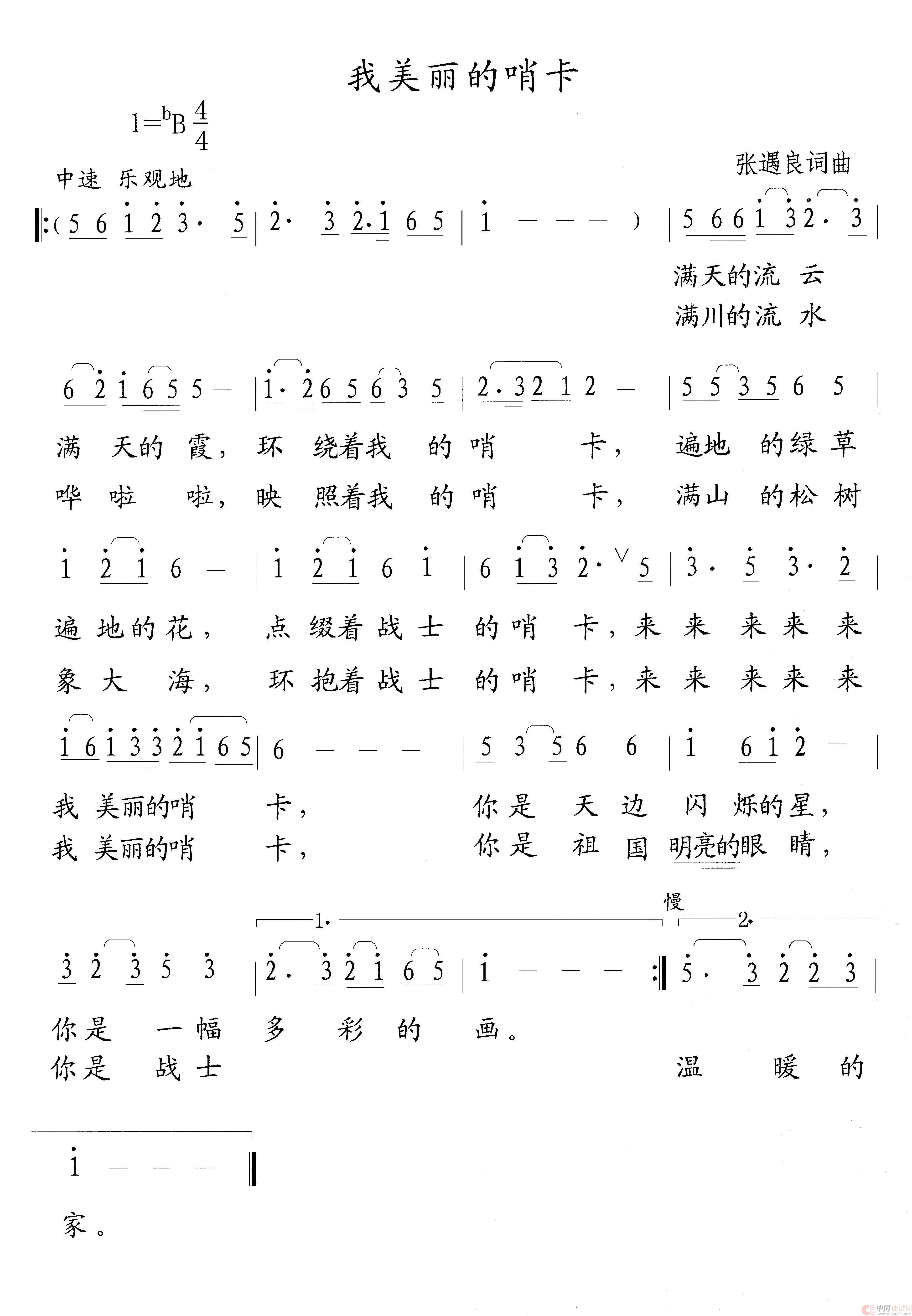 关于《我美丽的 哨卡》曲谱的评论