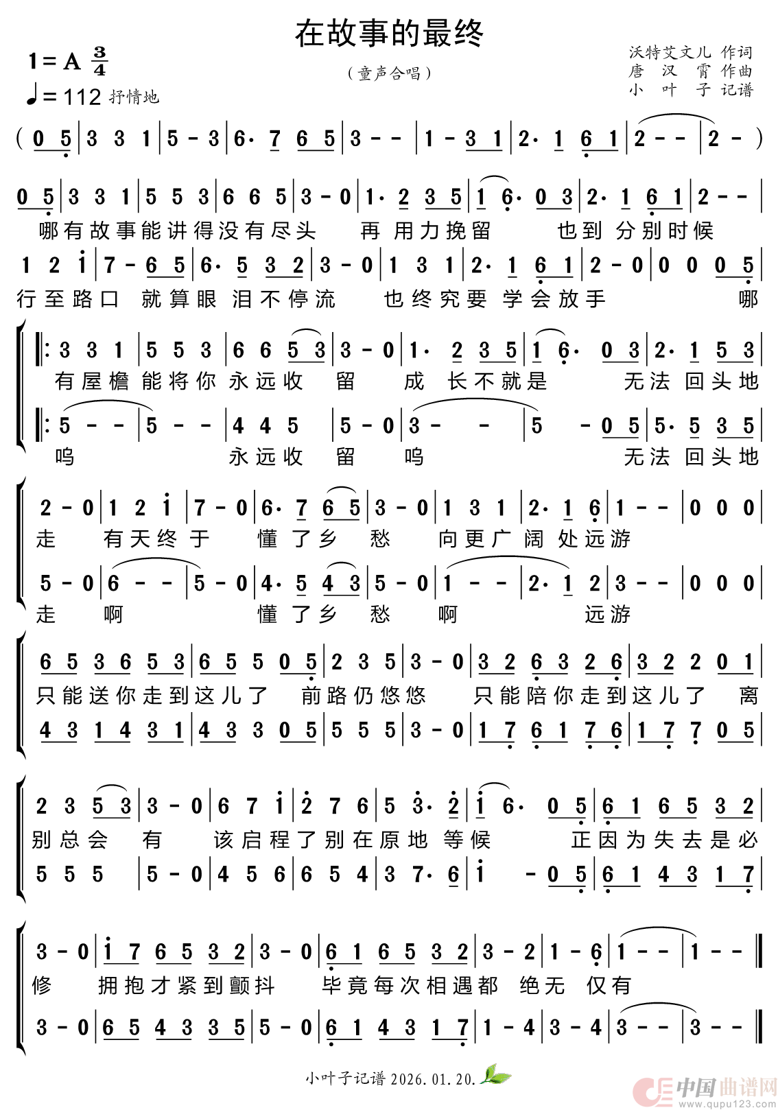 在故事的最终(二声部合唱简谱)