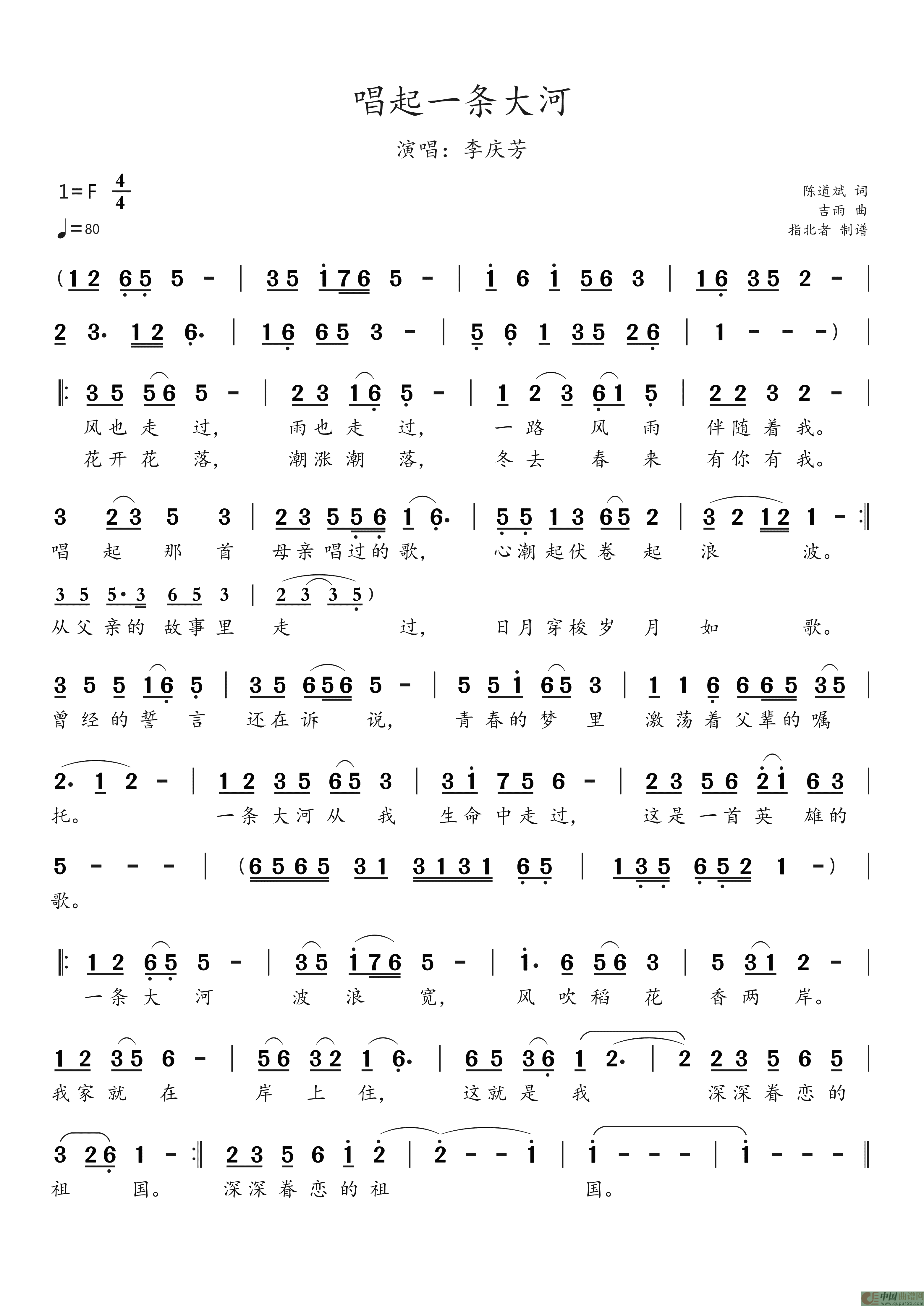 关于《唱起一条大河》曲谱的评论