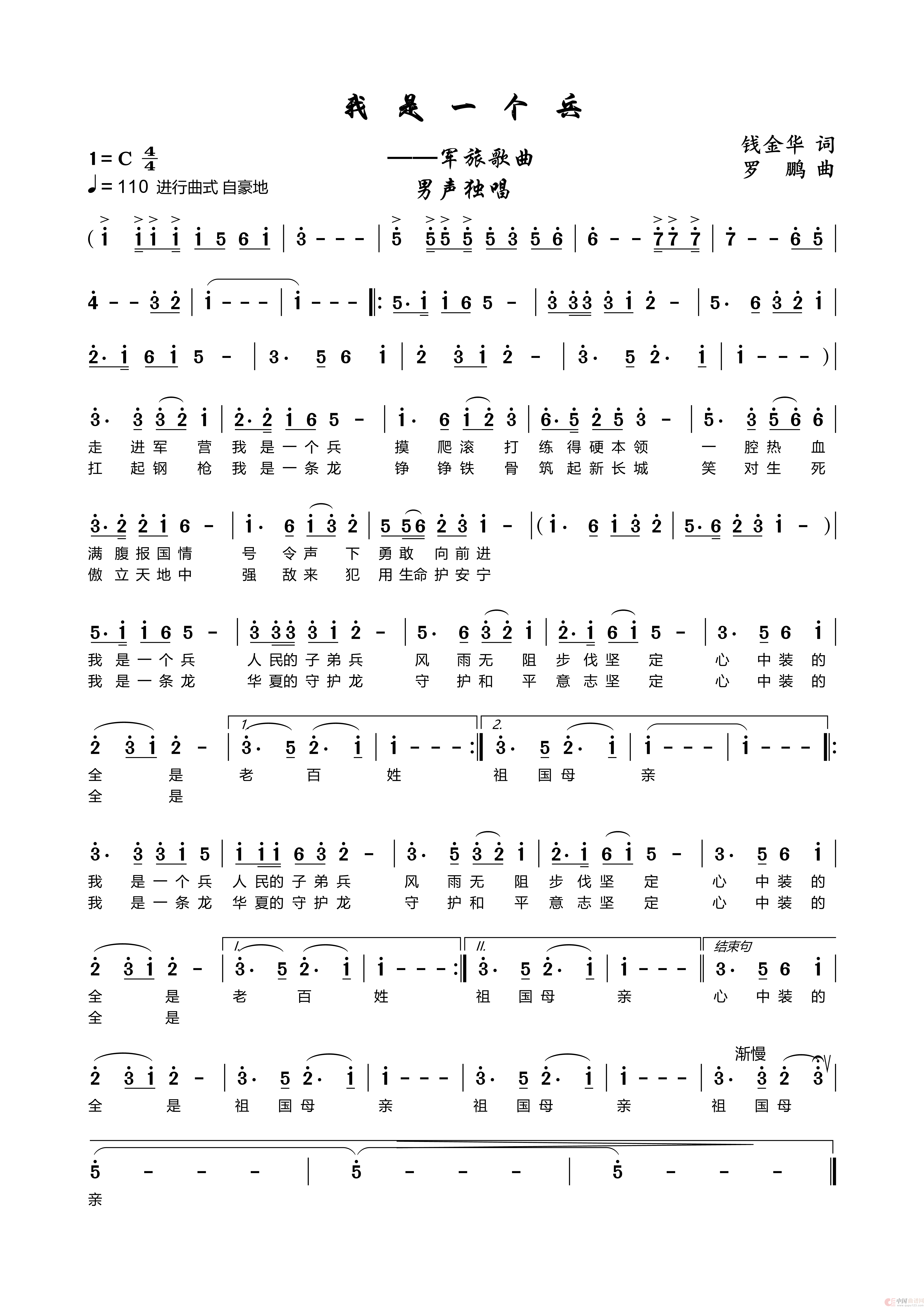 关于《我是一个兵》曲谱的评论