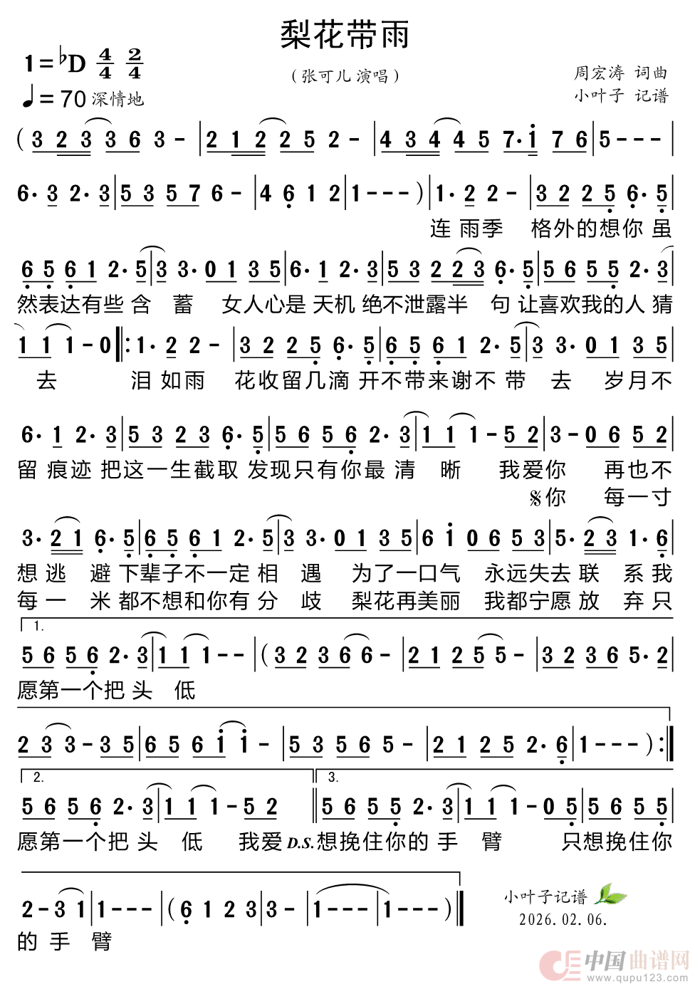 关于《梨花带雨》曲谱的评论