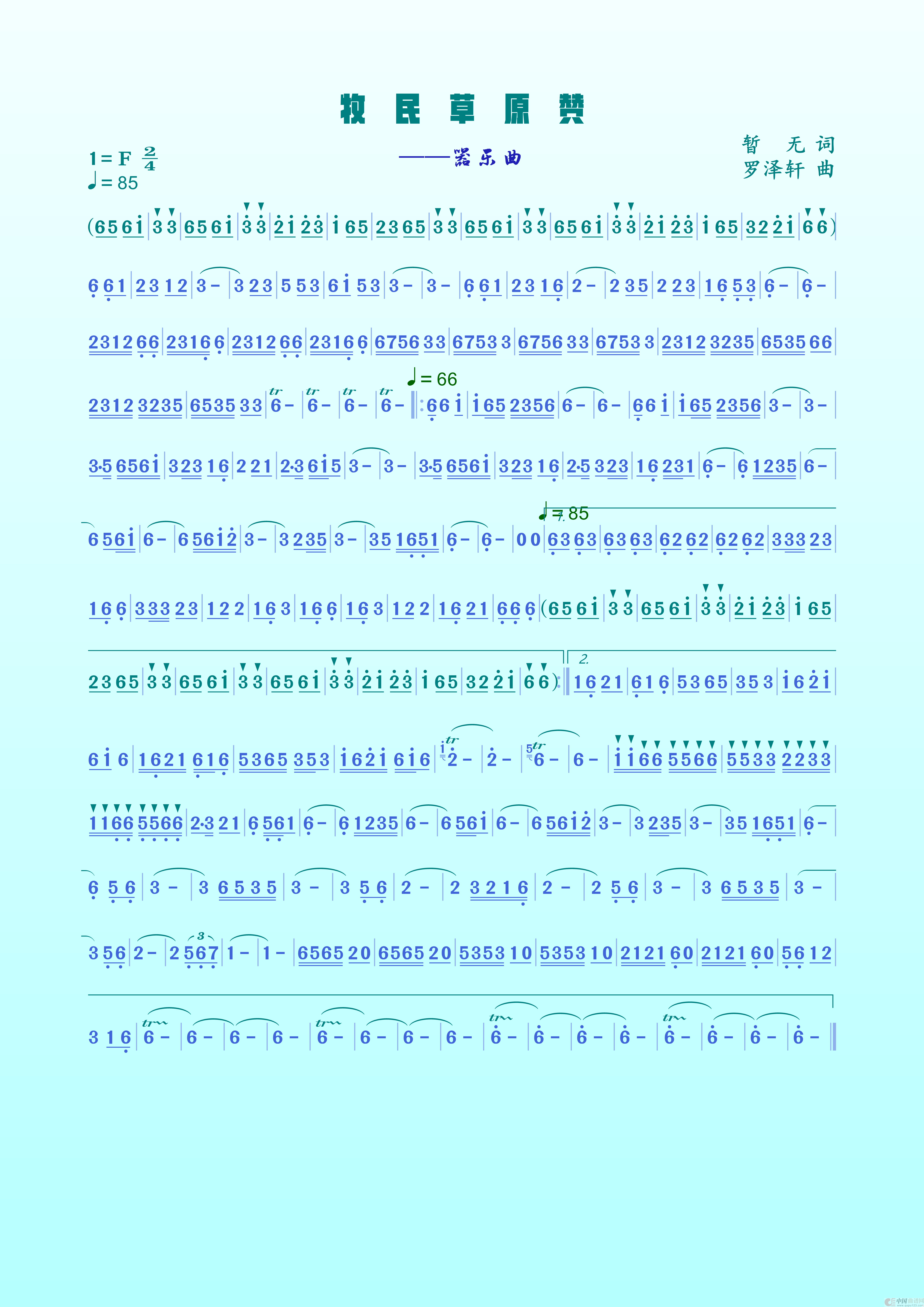关于《牧民草原赞》曲谱的评论