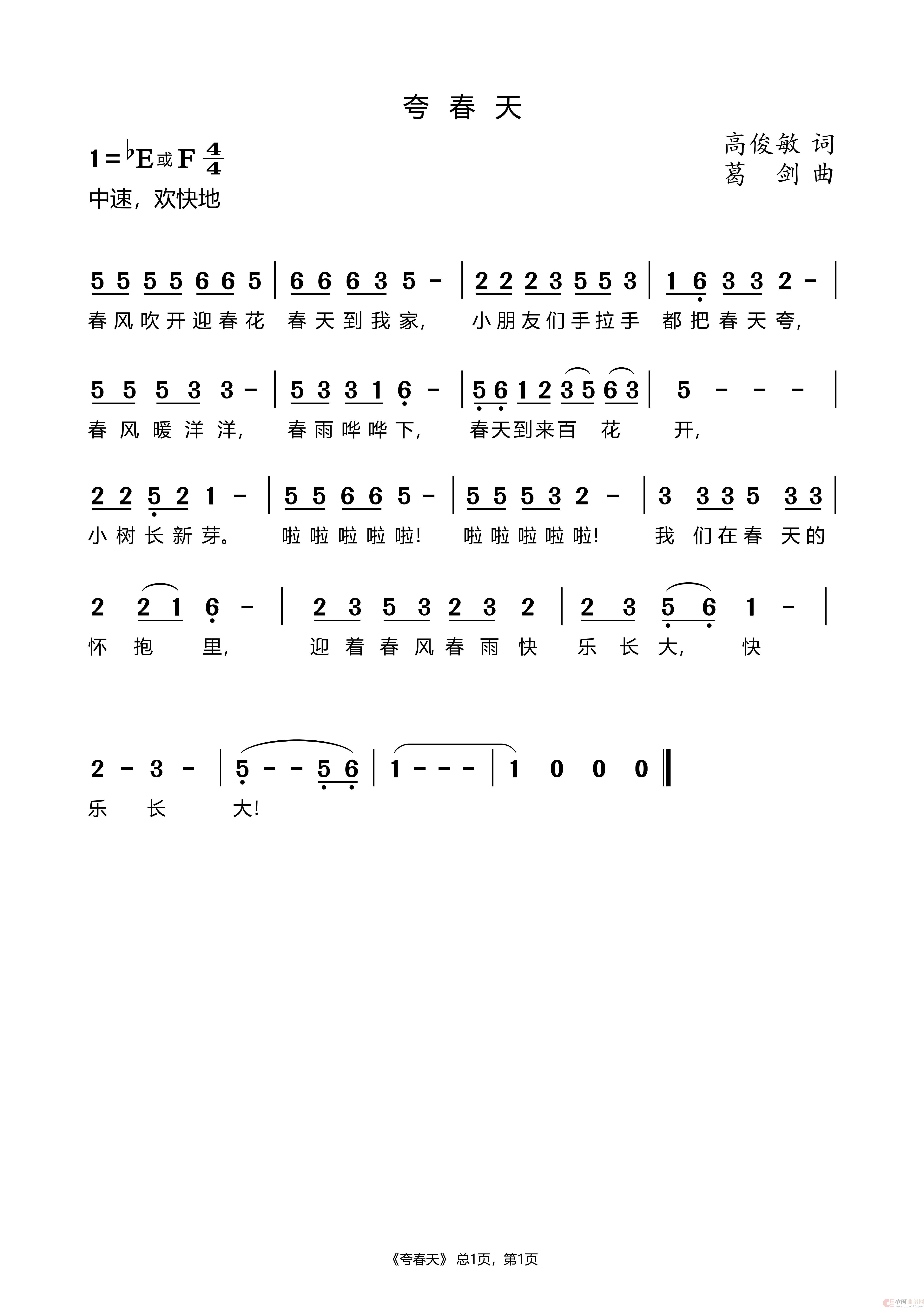 作词:高俊敏 作曲:葛剑 来源:作者原创 上传:琴剑庄主