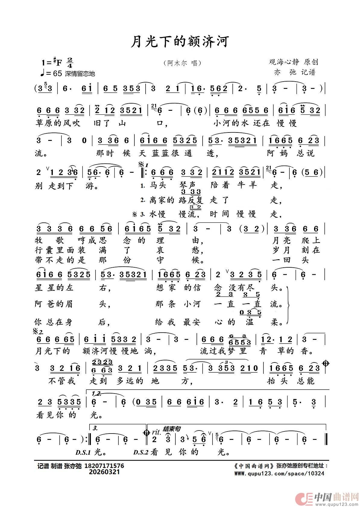 作词:观海心静 作曲:观海心静 演唱(奏):阿尔木 来源:张亦弛 记谱 制谱 上传:咪迷米张亦弛