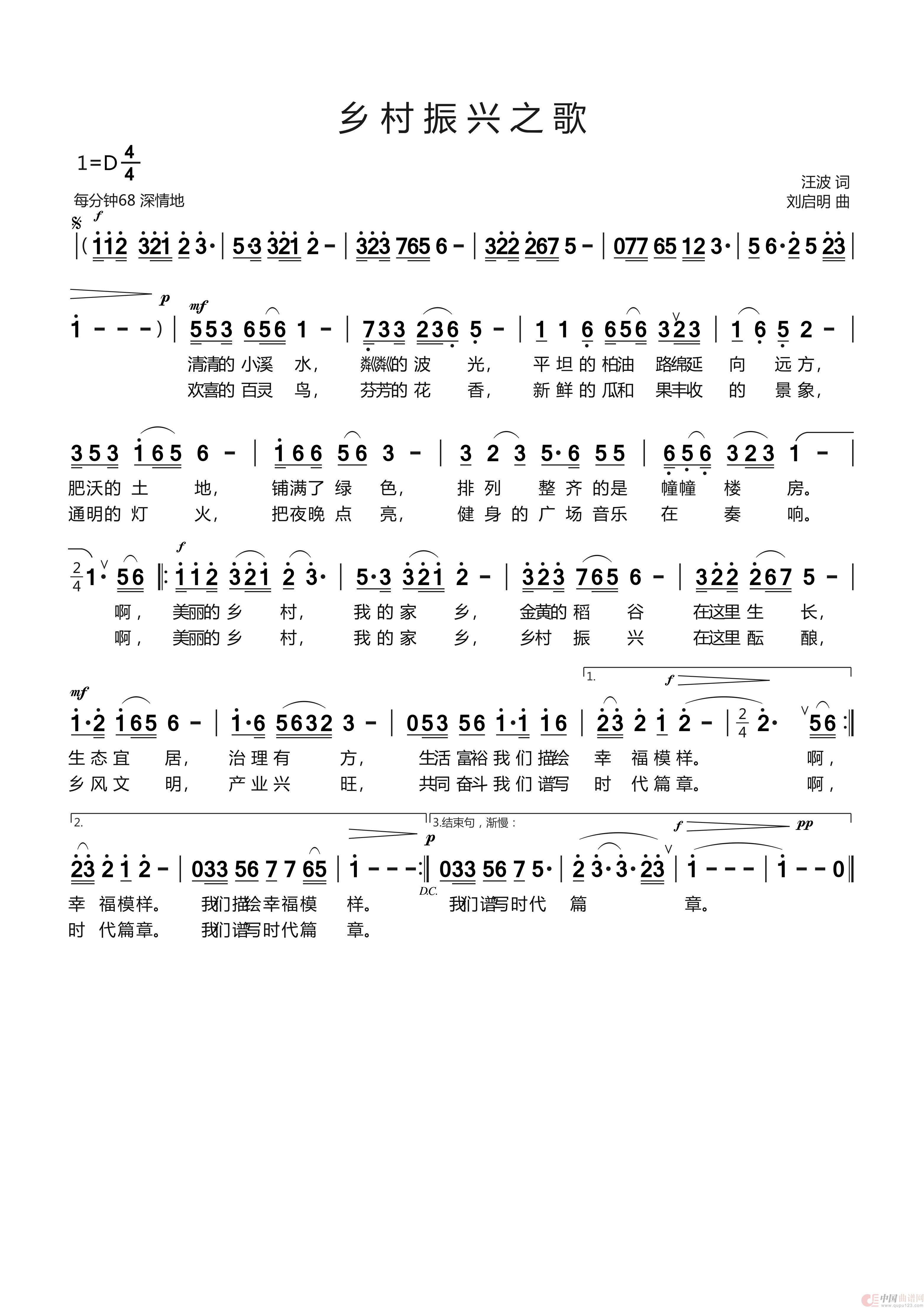 关于《《乡村振兴之歌 汪波词 刘启明曲 崔来宾唱》曲谱的评论