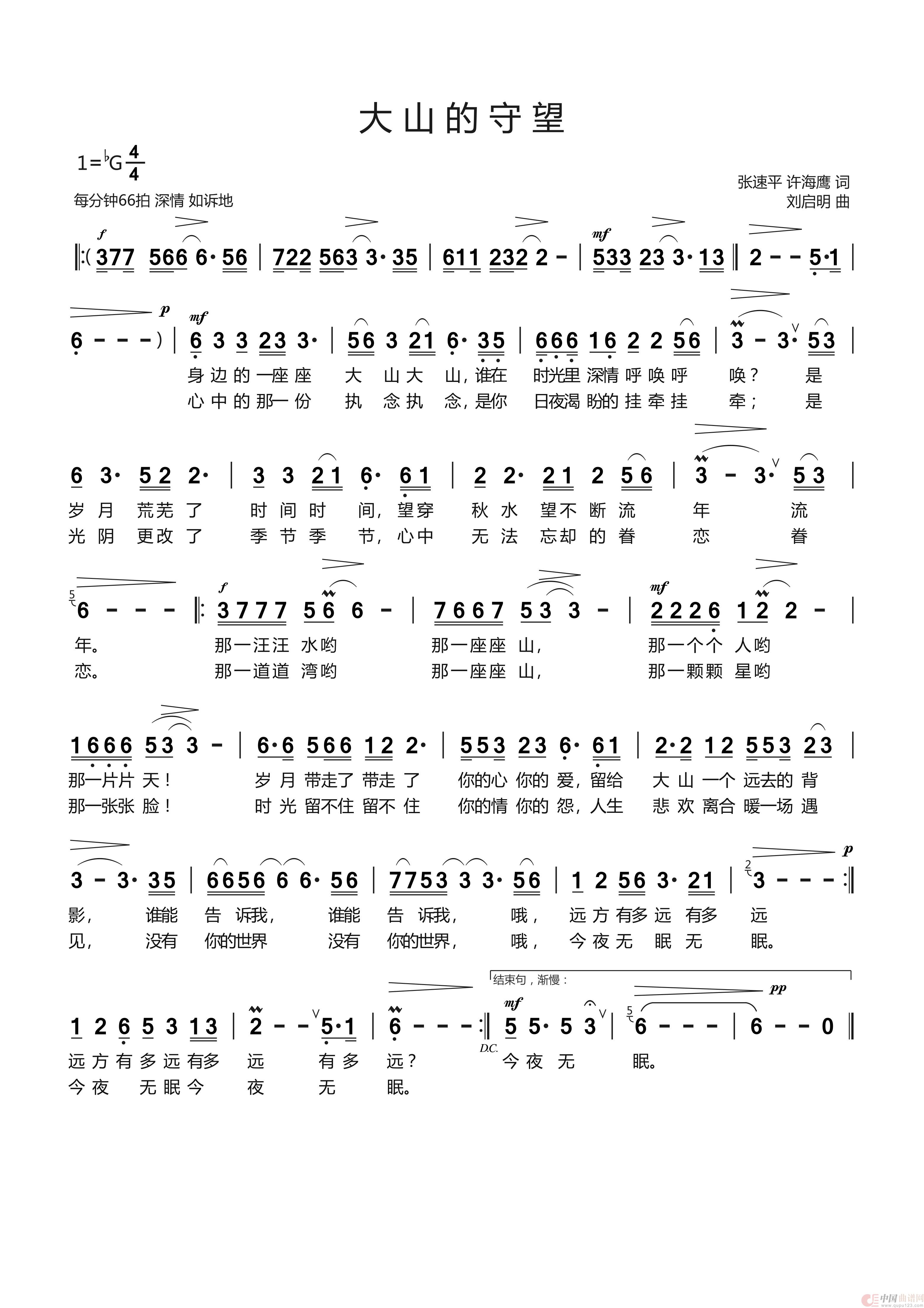 关于《《大山的守望》张速平 许海鹰词 刘启明曲 李萍演唱》曲谱的评论