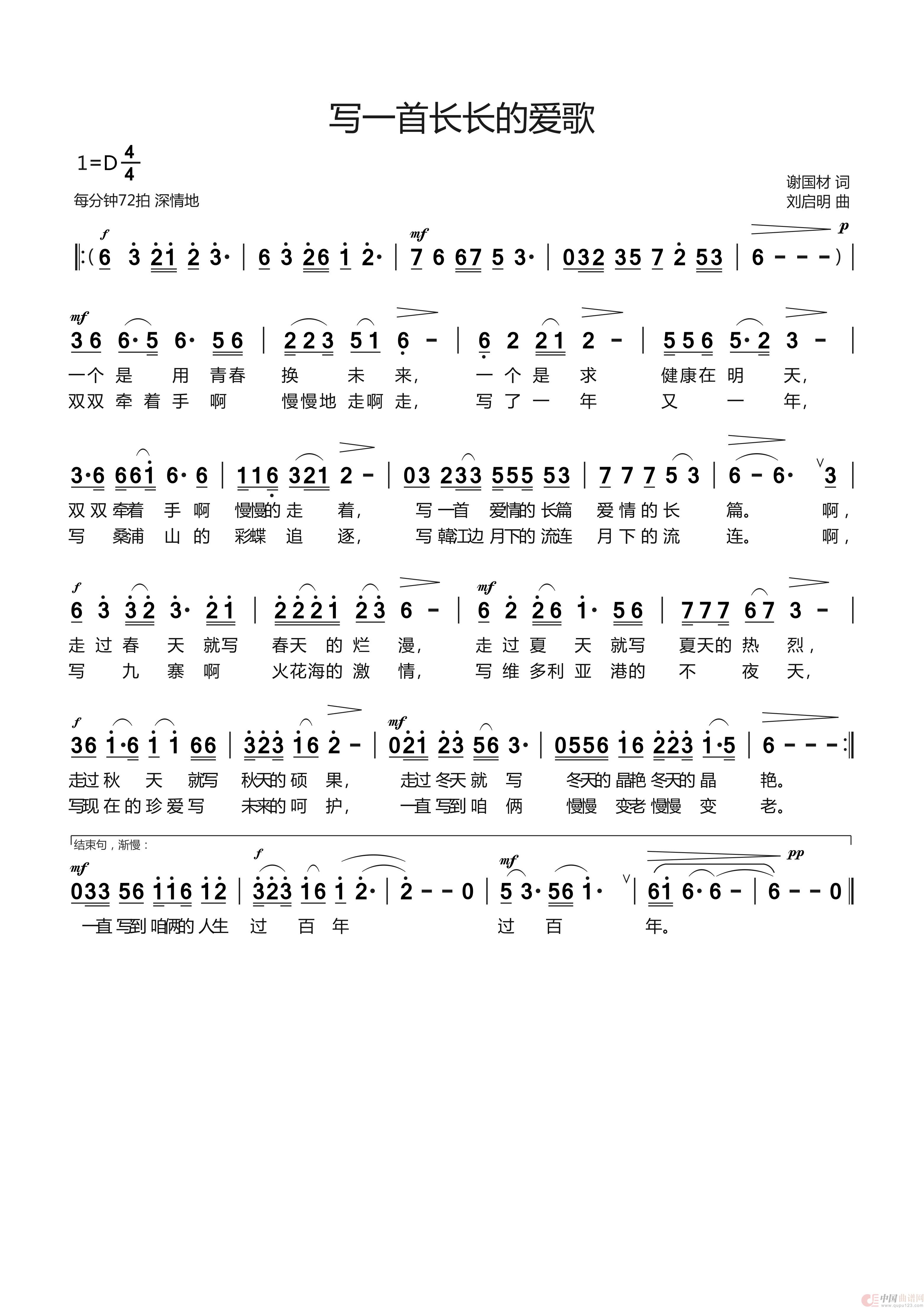 关于《《写一首长长的爱歌》谢国材词 刘启明曲 赵玉东演唱》曲谱的评论