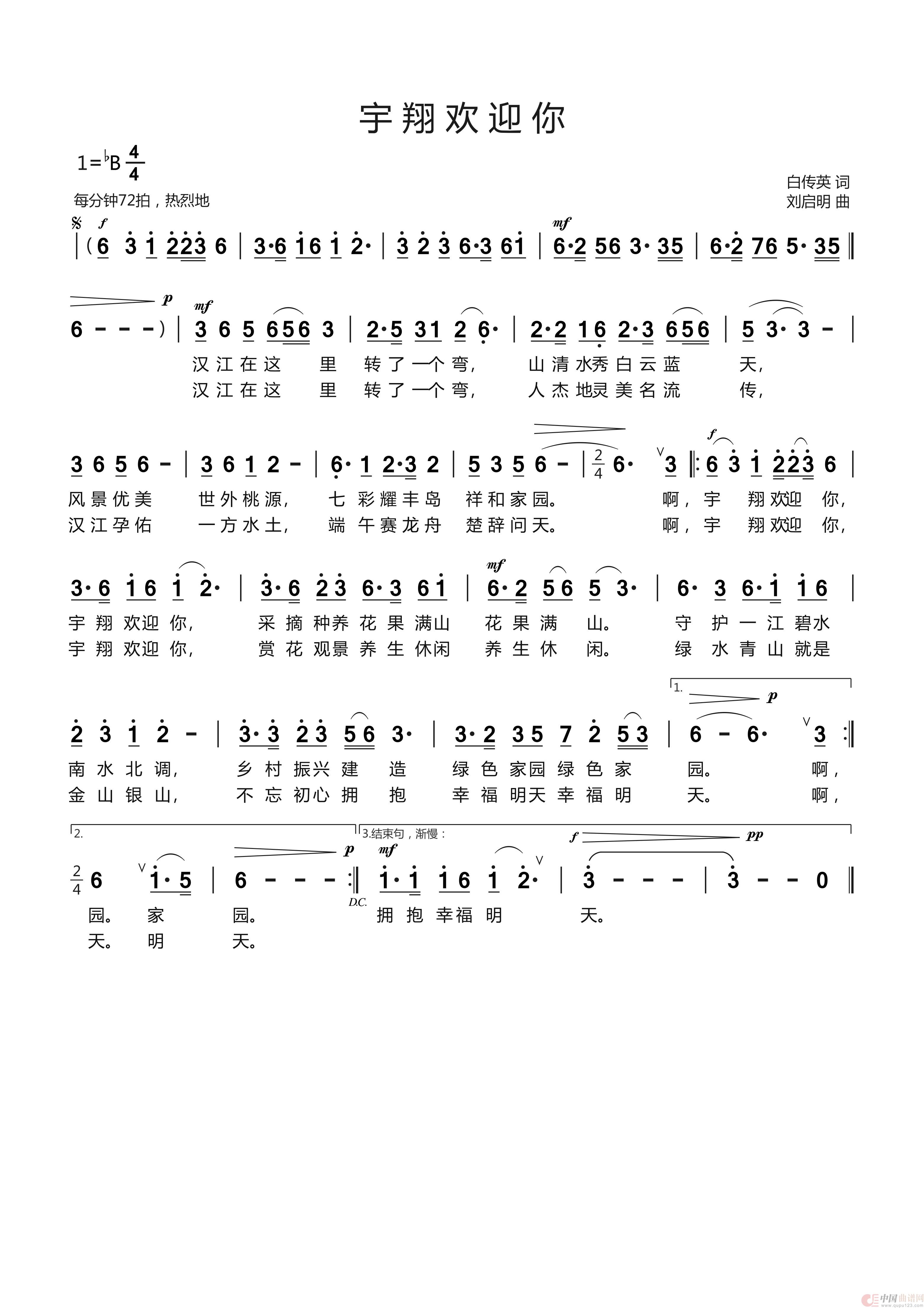 关于《《宇翔欢迎你》白传英词 刘启明曲 崔叶华演唱》曲谱的评论