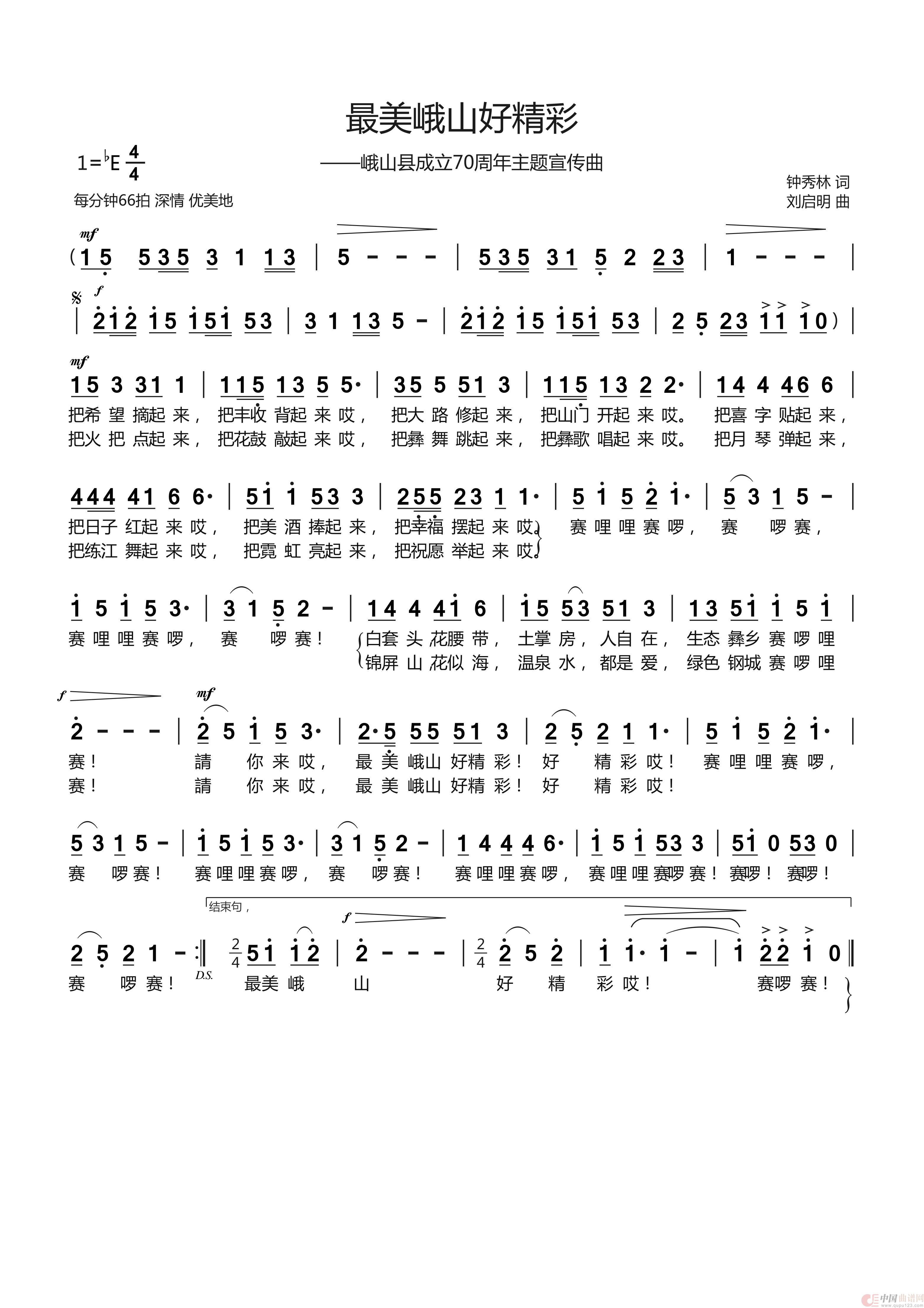 关于《《最美峨山好精彩 》钟秀林词 刘启明曲 崔叶华演唱》曲谱的评论