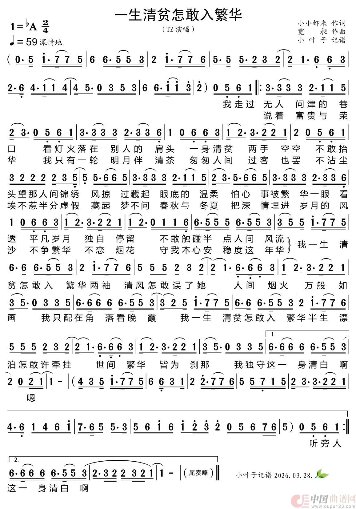 关于《一生清贫怎敢入繁华》曲谱的评论