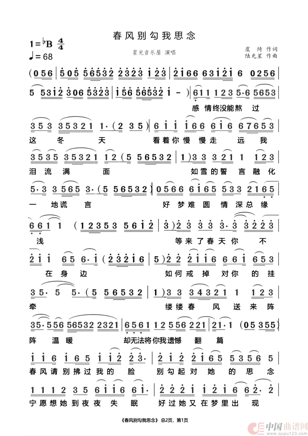 作词:虞绮 作曲:陆光星 演唱(奏):星光音乐屋 来源:简谱网 上传:小花儿357