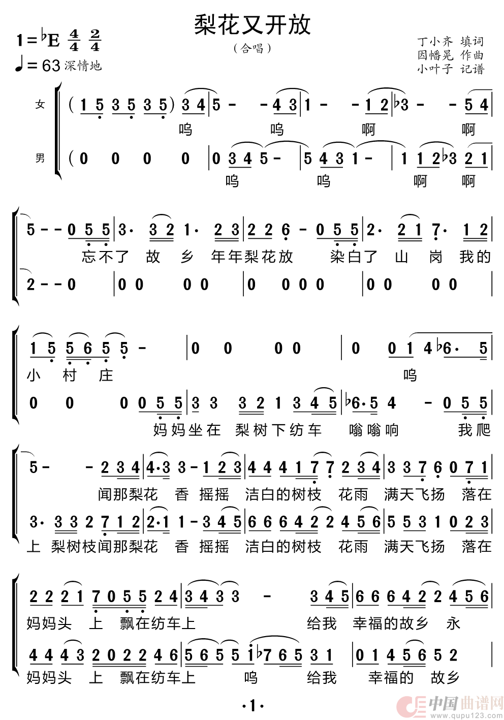 关于《梨花又开放》曲谱的评论