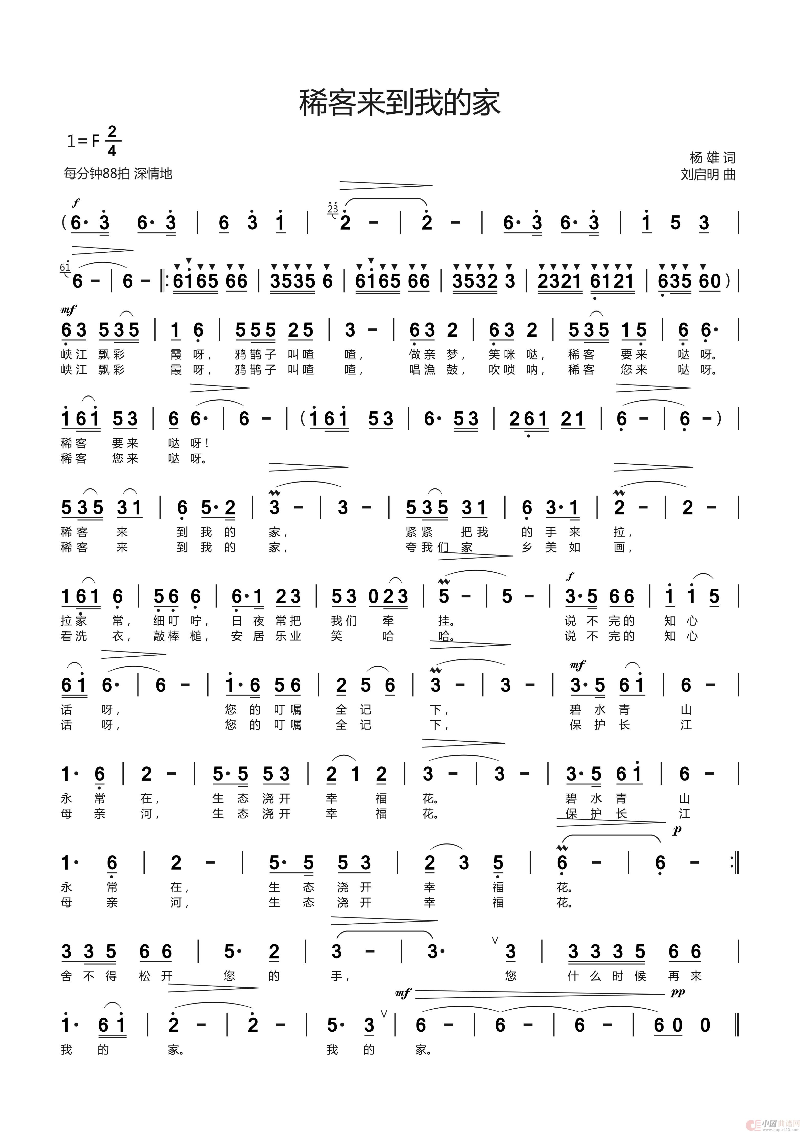 《稀客来到我的家》杨雄词 刘启明曲(1)_原文件名:《稀客来到我的家》杨雄词 刘启明曲.jpg