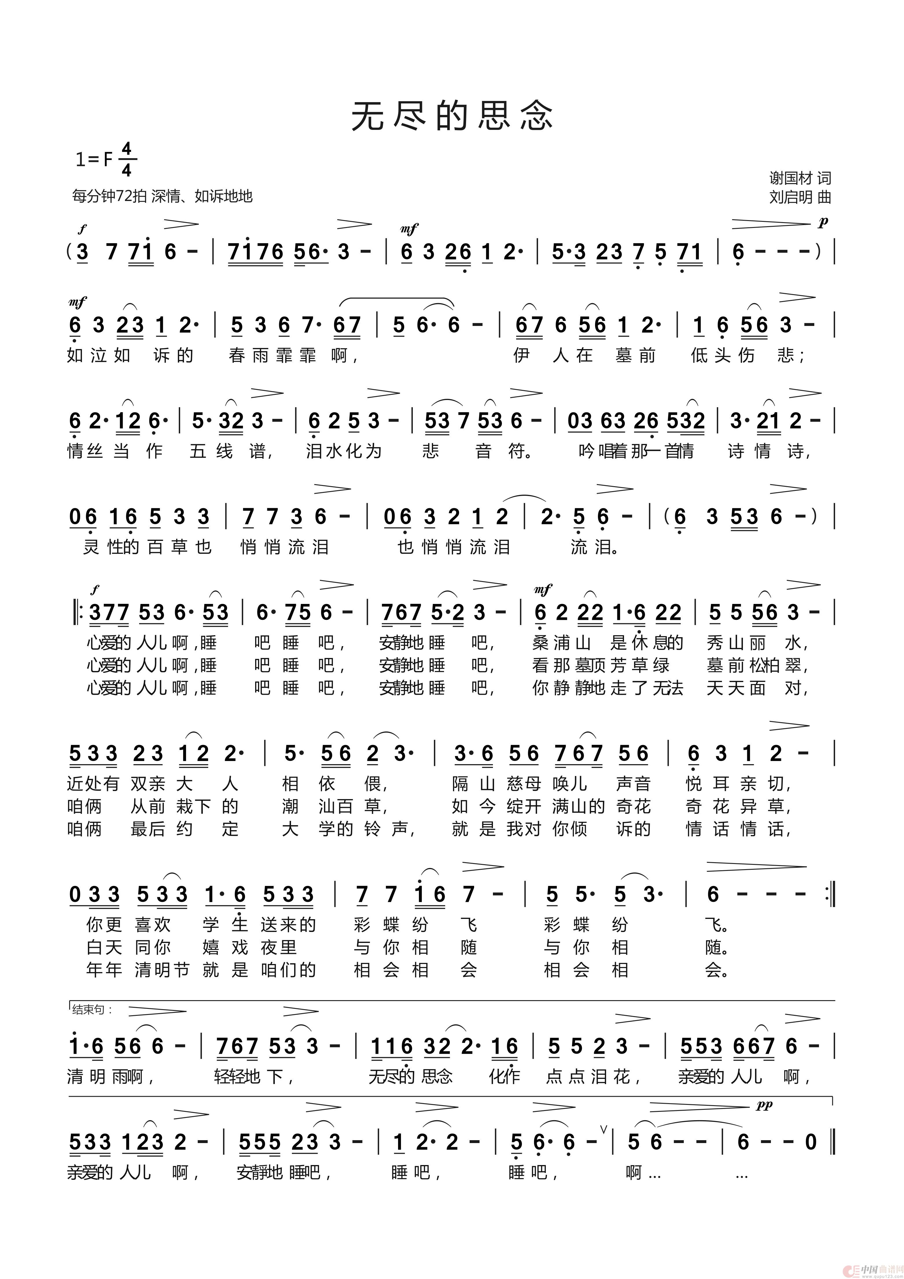 关于《《无 尽 的 思 念》谢国材词 刘启明曲 屈慧演唱》曲谱的评论