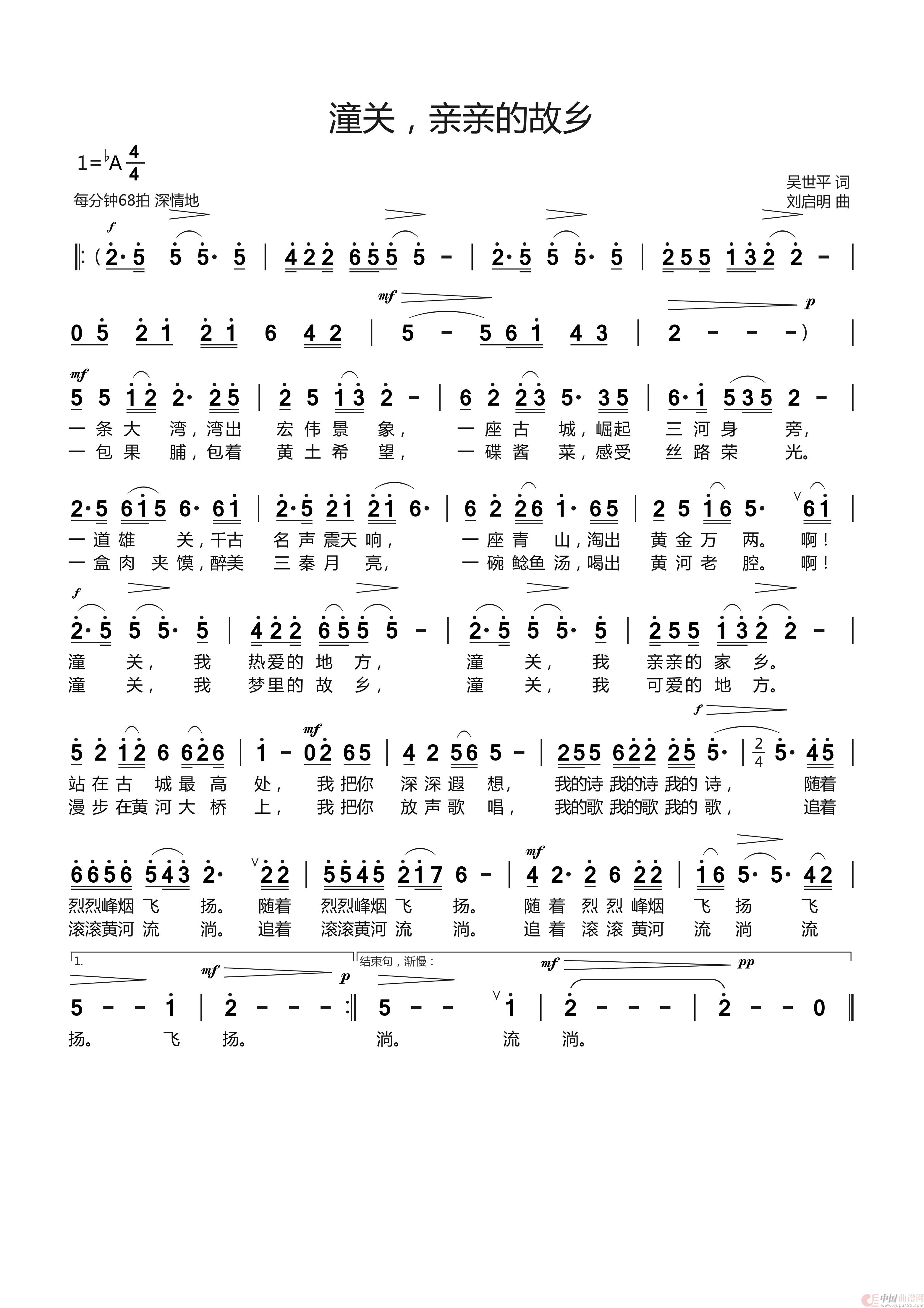 关于《《潼关,亲亲的故乡》吴世平词 刘启明曲 李萍演唱》曲谱的评论