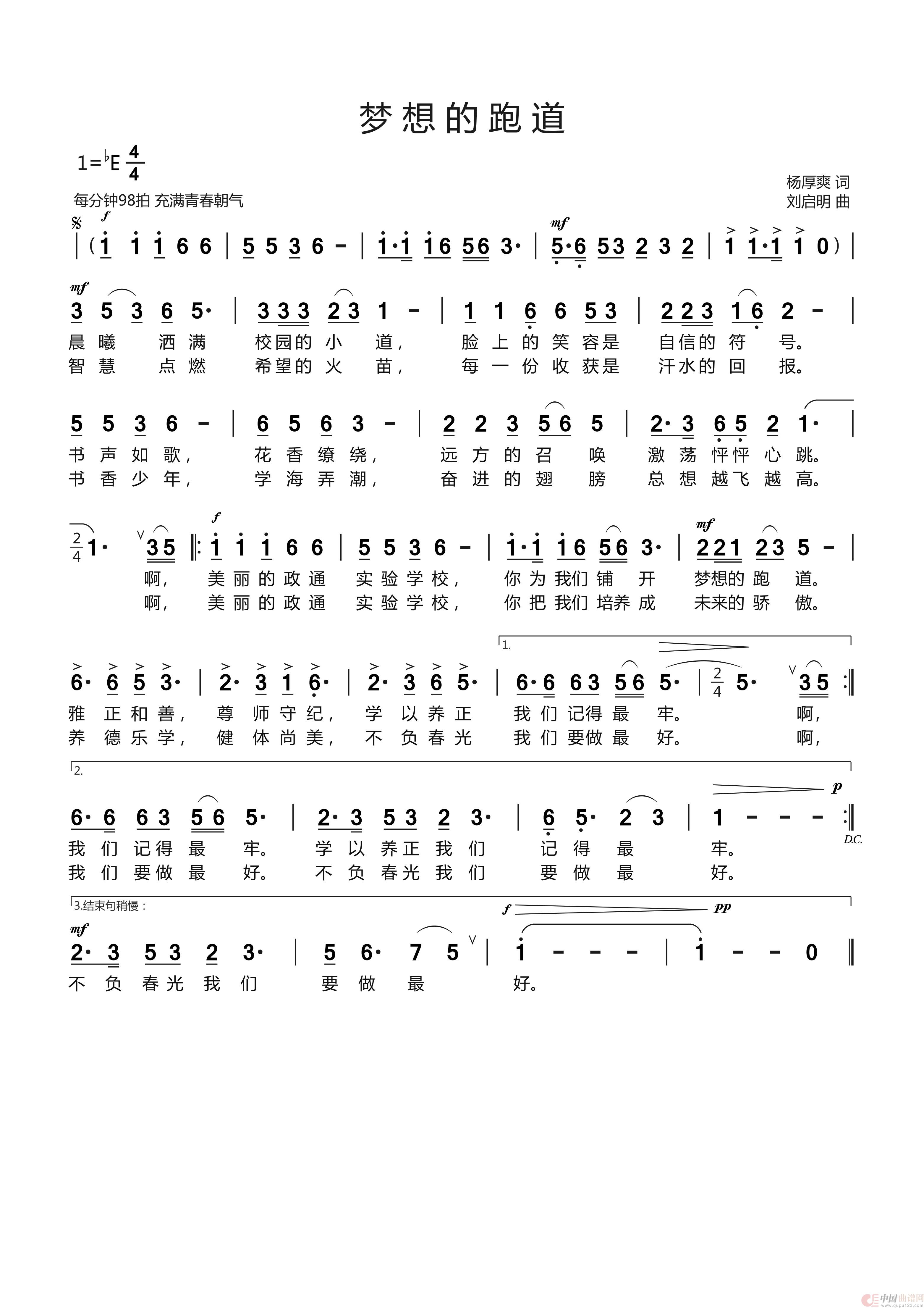 《梦 想 的 跑 道》杨厚爽词 刘启明曲(1)_原文件名:《梦 想 的 跑 道》杨厚爽词 刘启明曲.jpg