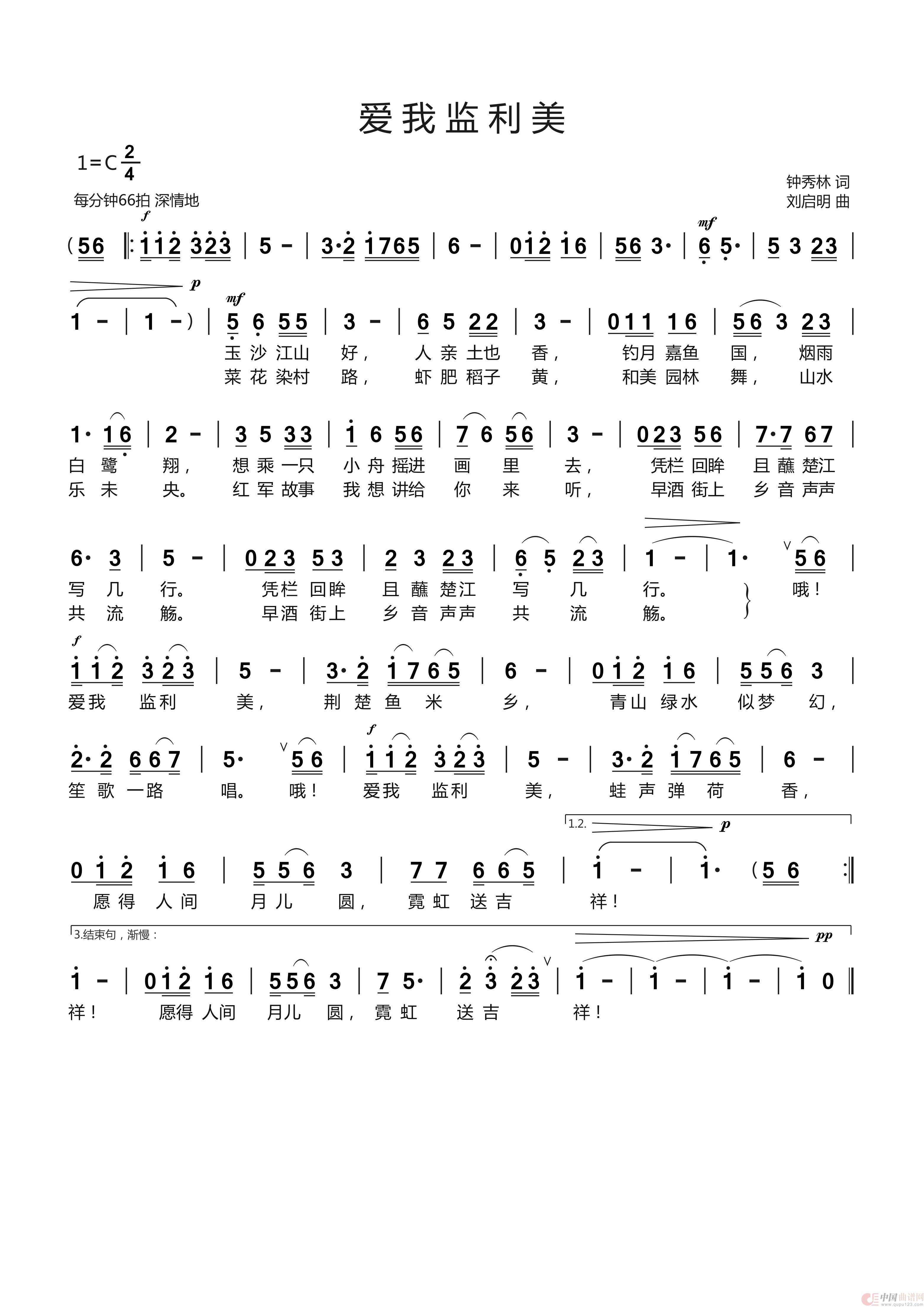 关于《《爱 我 监 利 美》钟秀林词 刘启明曲 李萍演唱》曲谱的评论