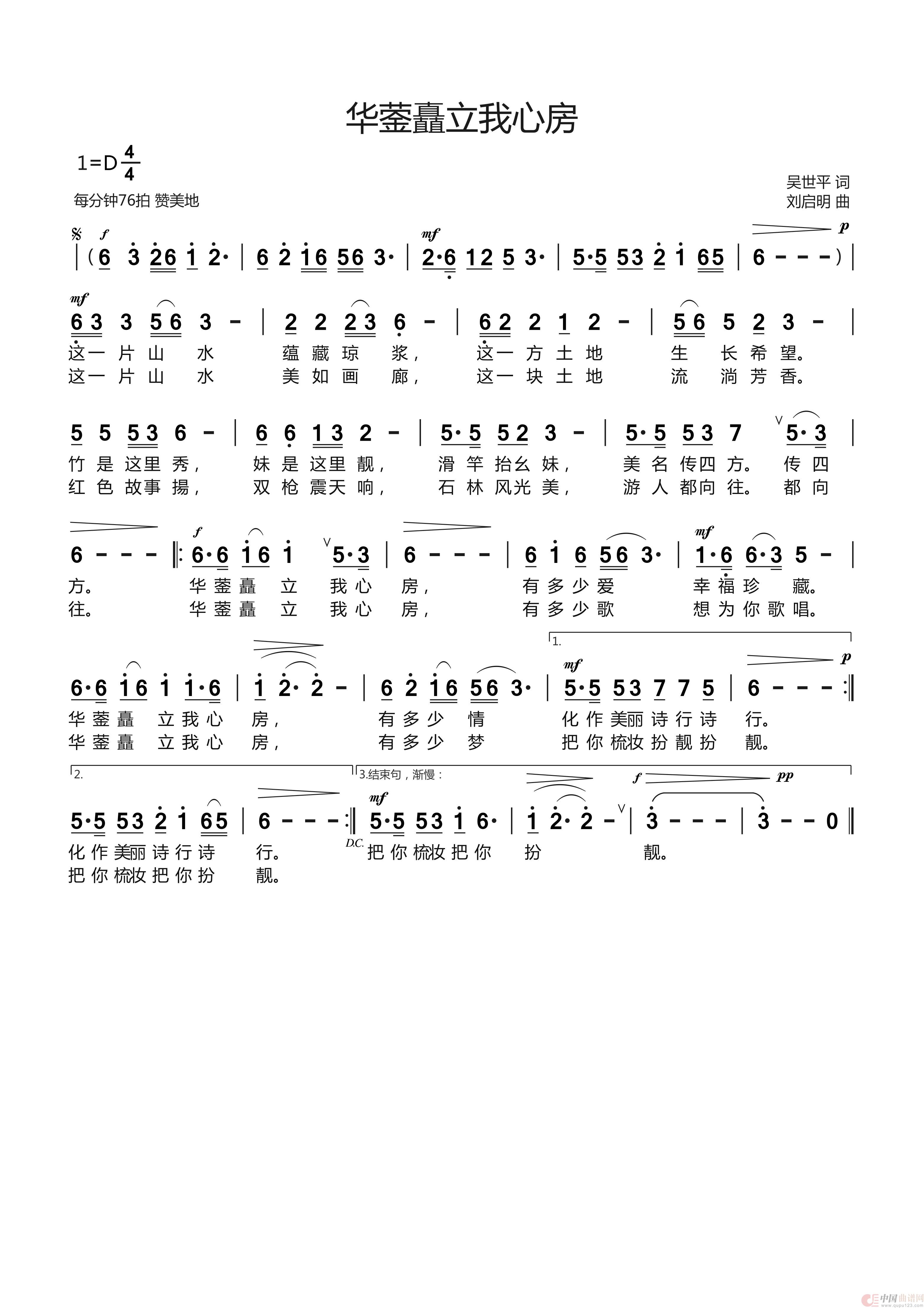 关于《《华蓥矗立我心房》吴世平词 刘启明曲 李萍演唱》曲谱的评论