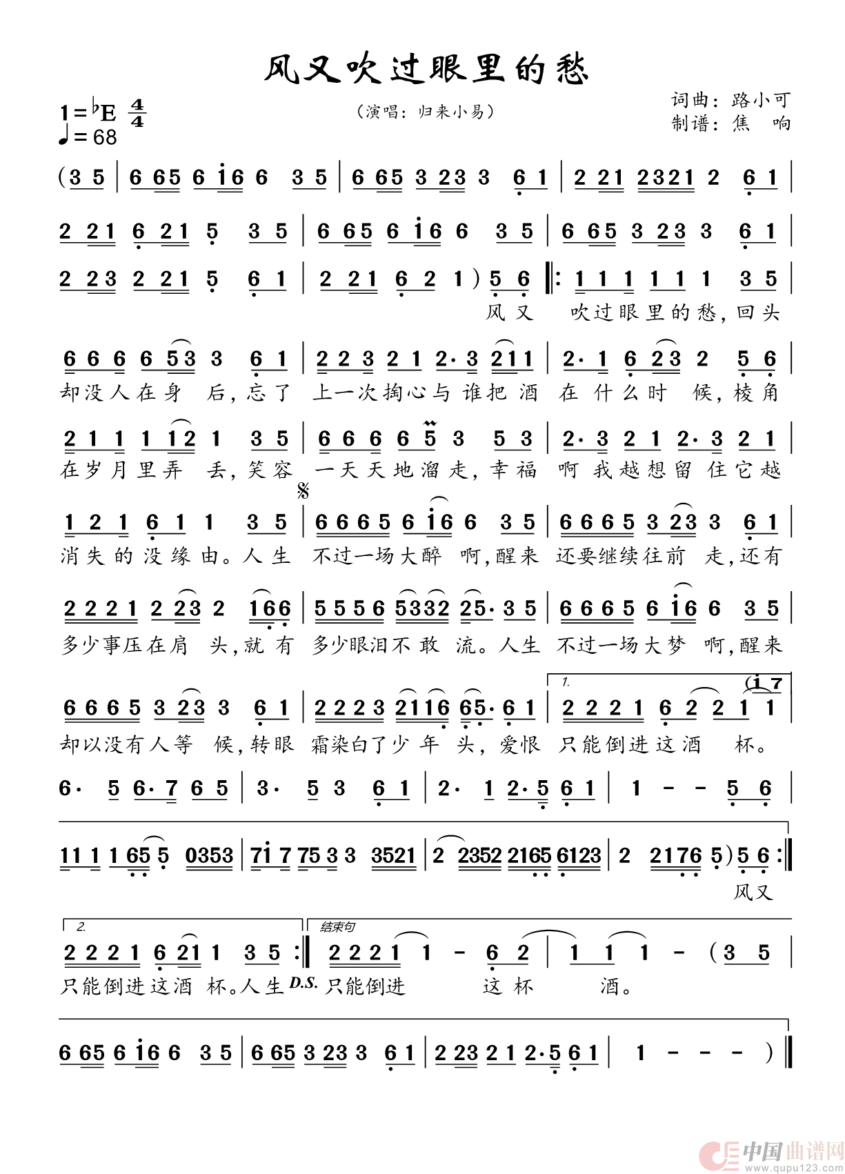 作词:路小可 作曲:路小可 演唱(奏):归来小易 来源:简谱网 上传:小花儿357