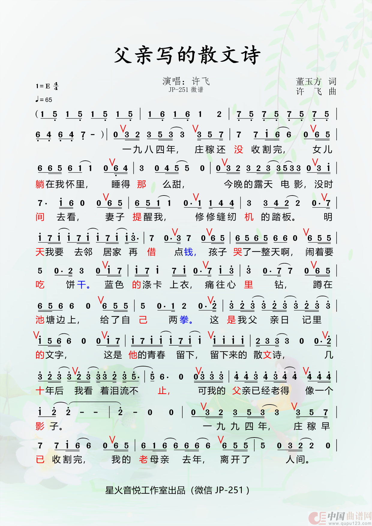 作词:董玉方   作曲:许飞   演唱(奏):许飞   来源:扒谱   上传:扣3883443810   日期:2026-04-22   浏览次数: