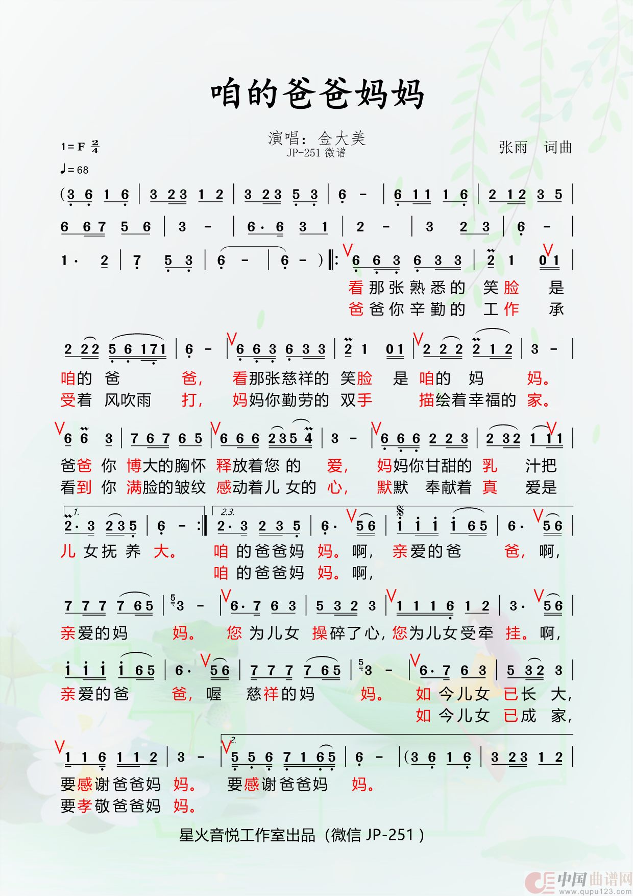 关于《咱的爸爸妈妈》曲谱的评论