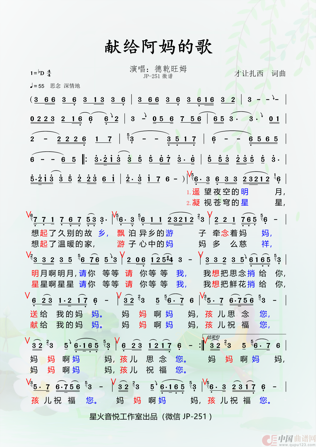 关于《献给阿妈的歌》曲谱的评论