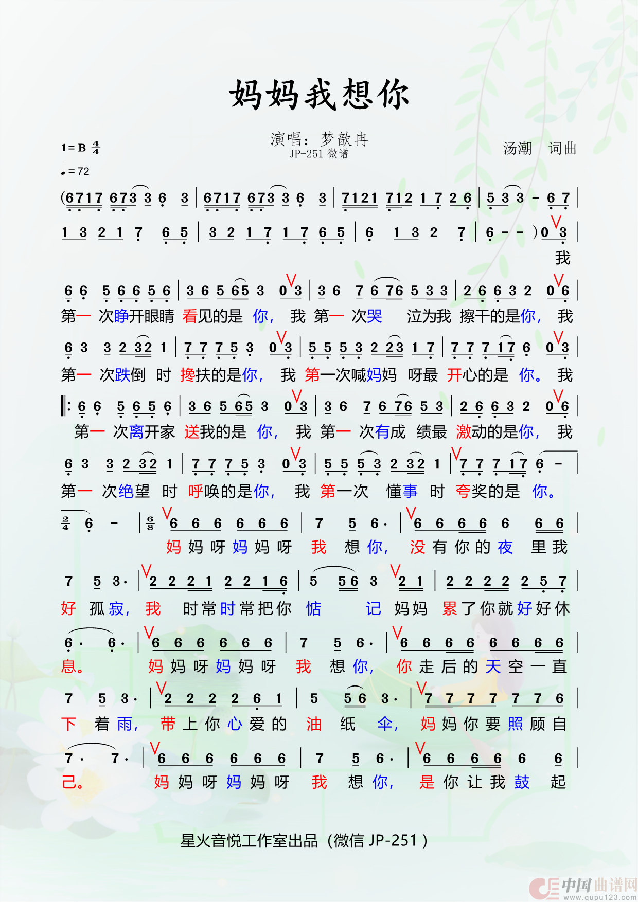 关于《妈妈我想你》曲谱的评论