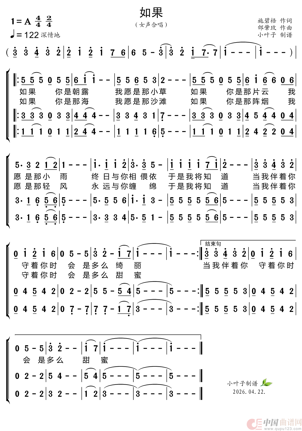 如果(三声部合唱简谱)
