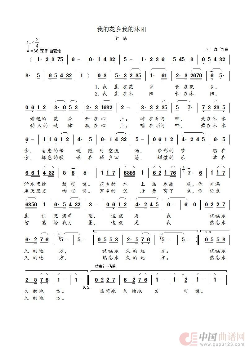 关于《我的花乡我的沭阳》曲谱的评论