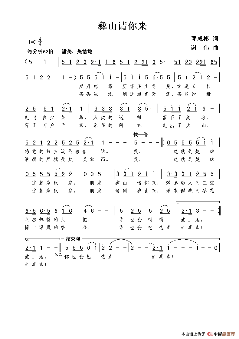 作词:邓成彬   作曲:谢伟   来源:谢伟原创   上传:谢伟   日期:2013-11-24   浏览次数:
